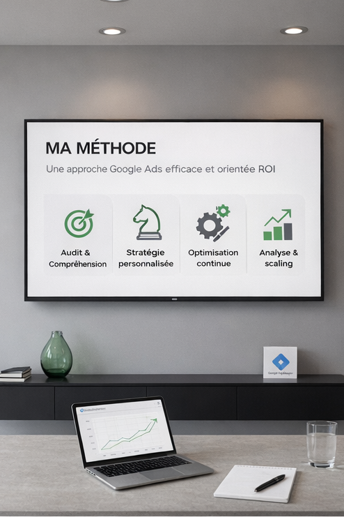 Mon rôle est de vous aider à investir intelligemment sur Google Ads, à identifier les opportunités de croissance, à optimiser ce qui fonctionne déjà et à scaler de manière maîtrisée lorsque les résultats sont au rendez-vous.